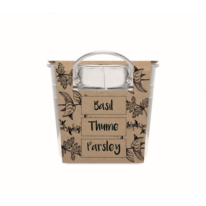 - Semillas de albahaca, tomillo y perejil, incluye abono