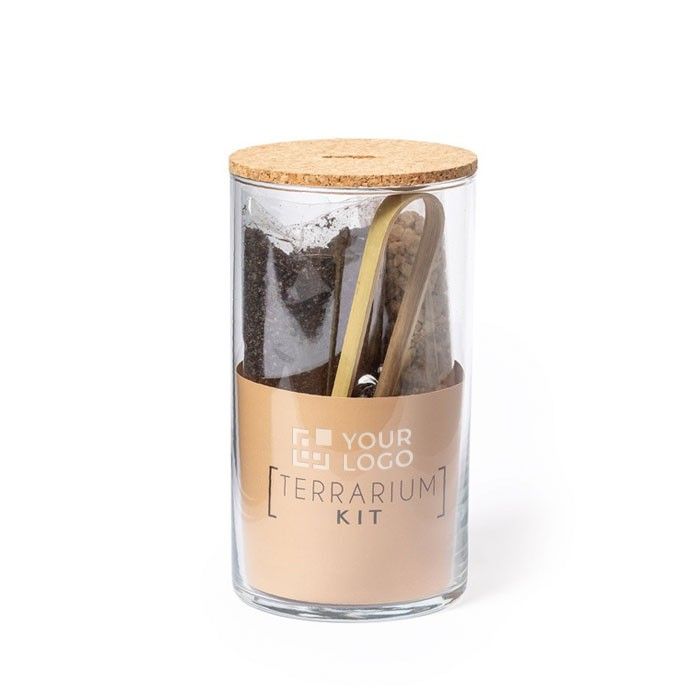 Terrario de corcho y cristal con semillas de cactus, pensado para hacer un cultivo de forma vertical, permitiendo así adaptarse a todo tipo de espacios. ¿Quieres que tus clientes tengan en cualquier rincón de su hogar esta simpática planta y mientras hacen promoción de tu marca? Sigue leyendo, ya que además, este kit es para todos, puesto que incluye las instrucciones de plantado y unas pinzas de bambú. Asimismo, está fabricado en Europa. Si tu empresa se alinea con valores sostenibles o con la naturaleza opta por este producto en tu estrategia de comunicación.