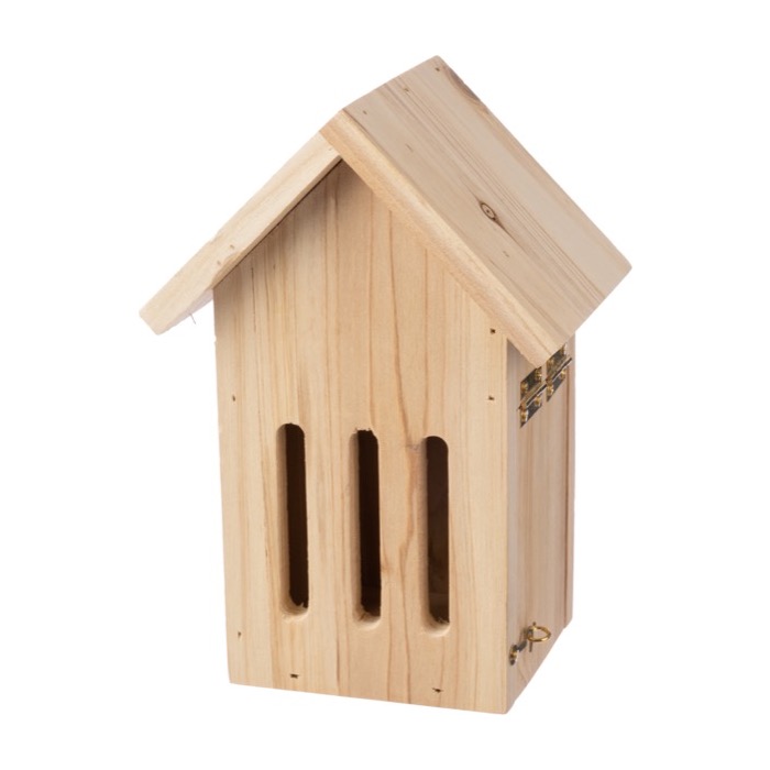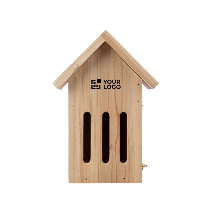 Casita de madera de pino diseñada especialmente para mariposas, con aberturas en la parte delantera que facilitan su acceso. Incluye un gancho colgante de metal, ideal para fijar la casita a cualquier pared de manera segura. Se presenta en una caja de cartón marrón, lo que facilita su almacenamiento y transporte. Este producto es perfecto para decorar jardines, añadiendo un toque natural y atractivo al entorno. Además, el servicio Express asegura una entrega rápida y eficiente. Ideal para empresas que buscan mejorar sus espacios exteriores o para campañas de marketing que promuevan la sostenibilidad y el cuidado del medio ambiente.
