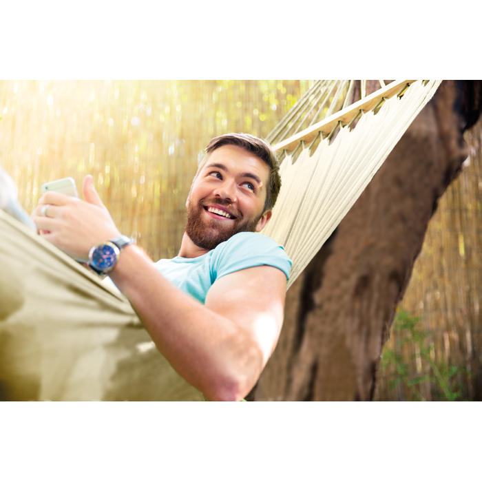 Hamaca publicitaria fabricada en lona con bolsa Hamaca Siesta