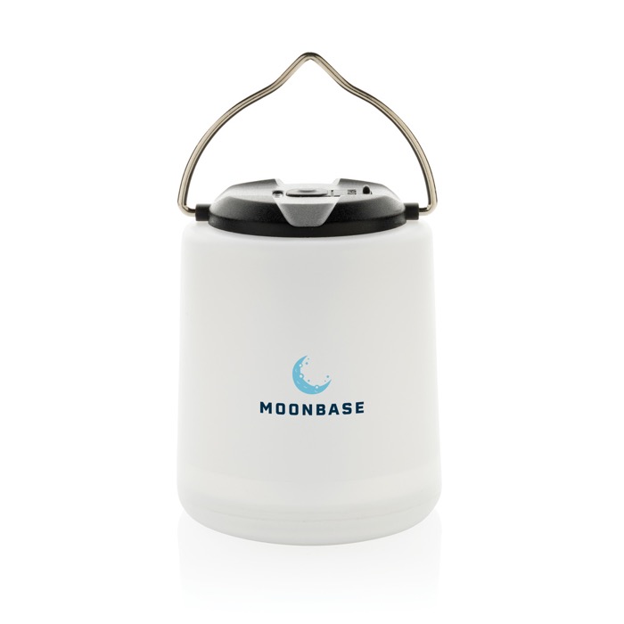 Lámpara de mesa portátil recargable Limio RCS, fabricada en plástico ABS reciclado con certificación RCS (Recycled Claim Standard), representa una solución de iluminación versátil para cualquier entorno. Su diseño permite colocarla sobre una mesa o colgarla, adaptándose a diversas necesidades. Equipada con una batería recargable mediante USB-C, ofrece hasta 4 horas de iluminación continua y se recarga completamente en solo 2 horas. La luz LED integrada proporciona hasta 300 lúmenes y cuenta con tres modos de uso: fuerte, atenuado e intermitente, ideales para diferentes situaciones. Con clasificación IPX4, es resistente a salpicaduras, lo que la hace apta para entornos húmedos. Libre de PVC, se presenta en una caja kraft con certificación FSC (Forest Stewardship Council), subrayando su compromiso con la sostenibilidad. Ideal para empresas que buscan soluciones de iluminación flexibles y sostenibles, puede ser utilizada en eventos corporativos o como parte de estrategias de marketing ecológico.
