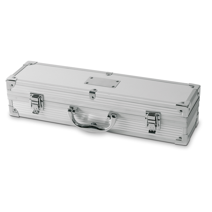 Apuesta por la cocina al aire libre con este set de barbacoa compuesto por un maletín de aluminio y tres accesorios de acero inoxidable. Con un diseño elegante y robusto, cada pieza está diseñada para ofrecer una experiencia de cocción excepcional. La superficie del maletín no solo resalta por su resistencia, sino que también ofrece un amplio espacio para personalizar con el logo de tu empresa, convirtiéndolo en un regalo distintivo y diferente. Una excelente opción para quienes buscan ofrecer regalos útiles y capaces de dejar huella en sus celebraciones corporativas o campañas estacionales. Cuenta con opción de transporte rápido.