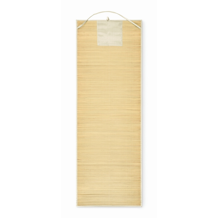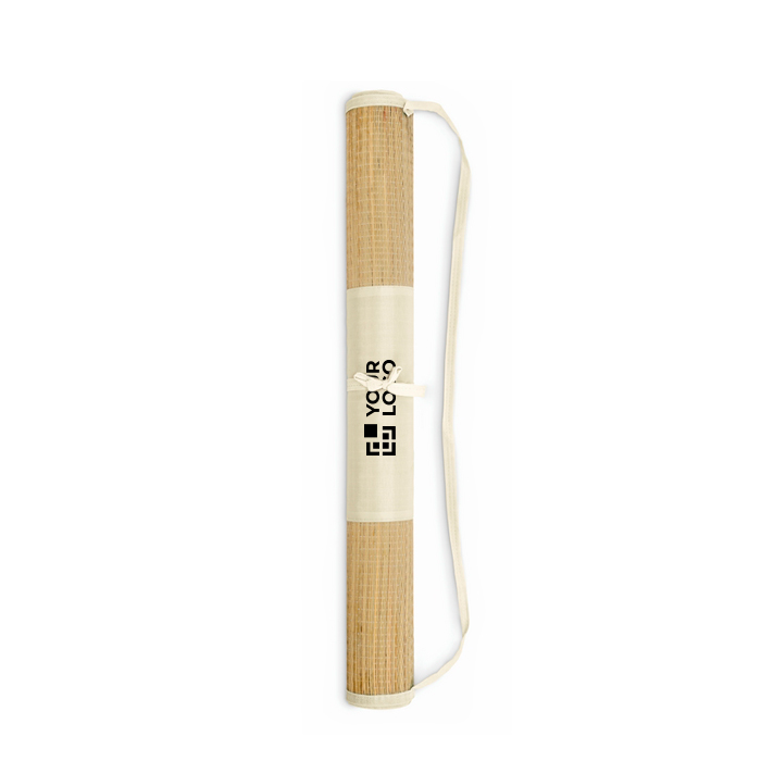 Promociona tu marca con esta esterilla de paja natural enrollable, ligera y fácil de transportar. Acompaña a tus clientes a la playa con un toque natural y práctico.