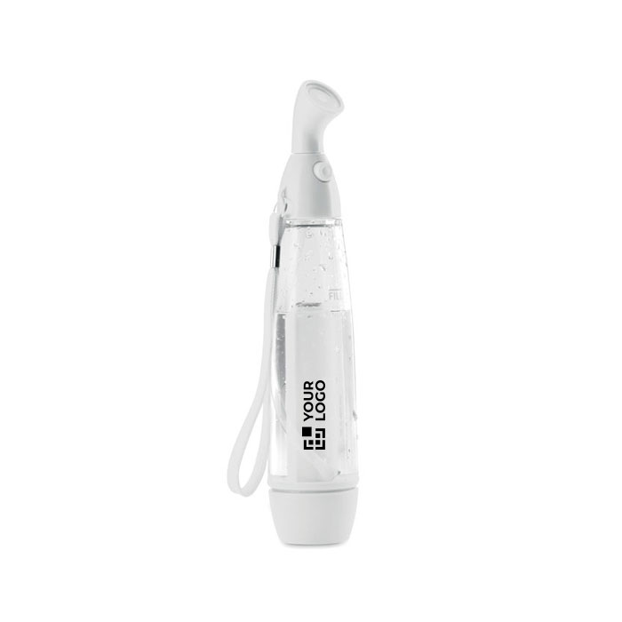 Un pulverizador de agua, fabricado en plástico ABS, para brindar una experiencia refrescante en los días más calurosos. Perfecto para eventos publicitarios y celebraciones corporativas al aire libre, este accesorio no solo destaca por su diseño moderno, sino también por su capacidad para ofrecer un alivio inmediato con un solo toque. Dispone de una cinta muñequera que, junto a su diseño compacto, facilita el transporte, agarre y uso del mismo. Además, es posible personalizarlo con tu logo en un lado o circularmente, añadiéndole un detalle único y distintivo que ofrecerá visibilidad de marca sin apenas esfuerzo. Tiene transporte rápido.
