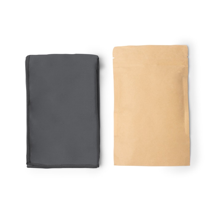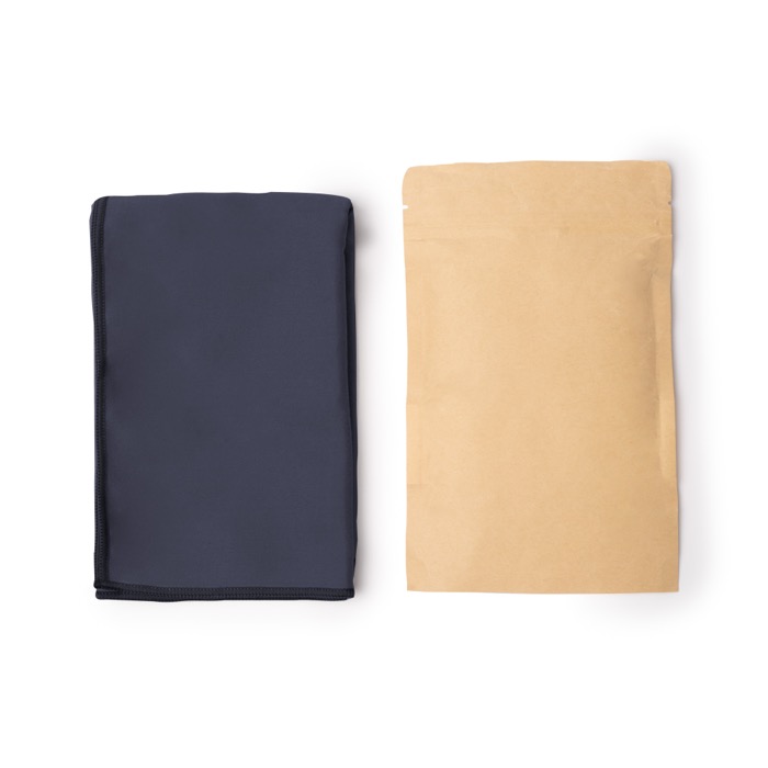 Toalla ligera de microfibra de plástico reciclado, con gramaje de 200 g/m² para un secado rápido y un tacto suave. Incorpora borde remallado a conjunto del cuerpo, pensado para mejorar la resistencia al uso continuado y mantener un acabado uniforme. Formato práctico para llevar en bolsa de deporte, viaje o actividades al aire libre sin sumar volumen. Superficie adecuada para personalización y visibilidad de marca en acciones de empresa, eventos deportivos o bienvenida de empleados.