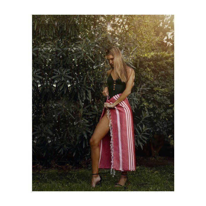 - Pareo toalla con diseño de rayas blancas