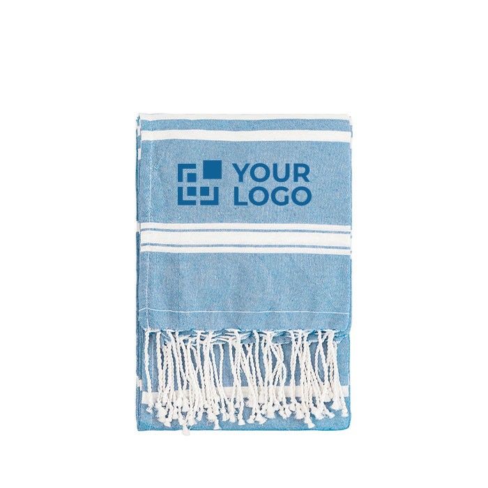 Este pareo toalla con atractivo y sencillo diseño a rayas blancas se convertirá en el imprescindible para tus días de playa y piscina. Fabricado en 80% algodón y 20% poliéster, su tejido sin rizo tipo fouta posee un gramaje de 170 gr/m², lo que se traduce en un accesorio de calidad perfecto para promocionar tu marca. Está disponible en diferentes colores y cuenta con medidas de 90 x 180 cm. También destaca por la posibilidad de personalizarlo con tu logo mediante diferentes técnicas, incluso si necesitas una impresión a todo color.