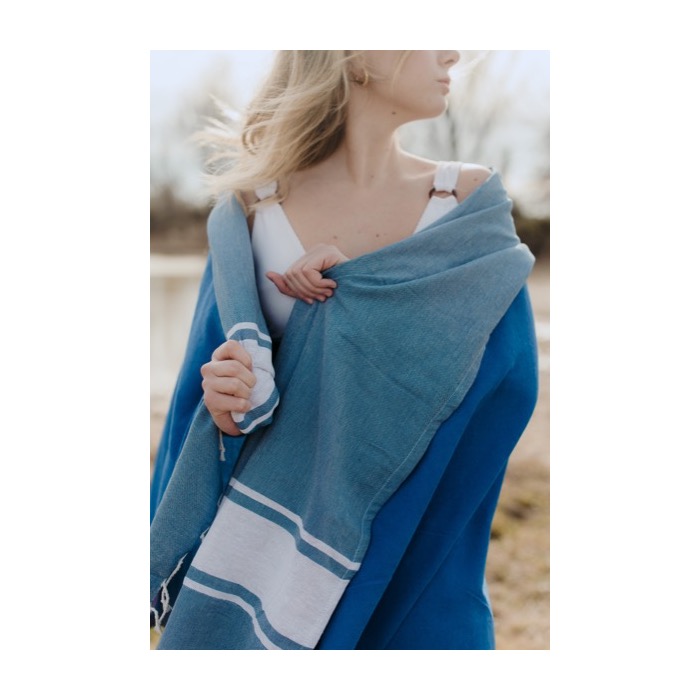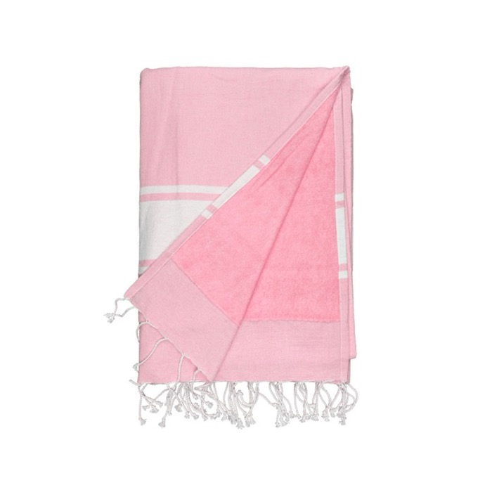 Convierte estas toallas pareo en las protagonistas de tus campañas veraniegas y haz que tus clientes y trabajadores ayuden a aumentar la visibilidad de tu marca en espacios abiertos y relajados como playas y piscinas. Con acabado de rizo ligero de 180 g/m², un diseño con franjas blancas y flecos en ambos extremos, y la posibilidad de personalizarlo con tu logo, este producto será la estrella de tu merchandising en los meses más calurosos.