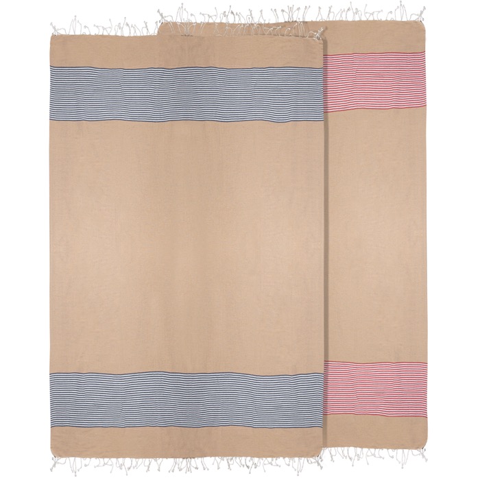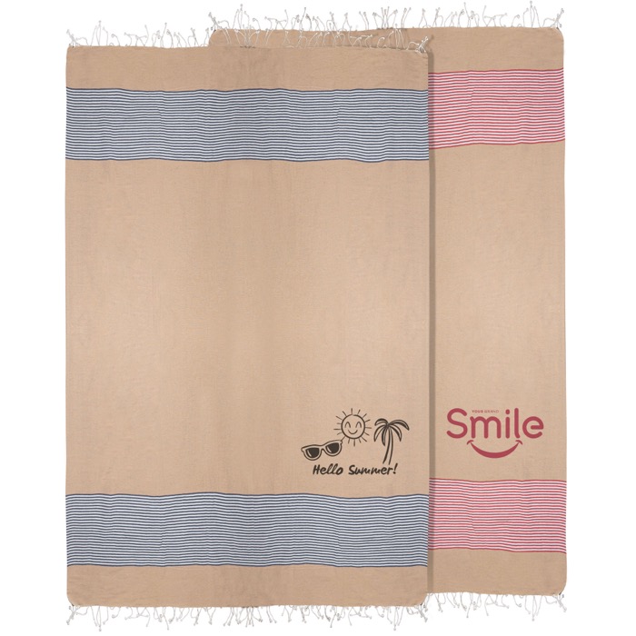 Toalla de playa de algodón. Con un gramaje de 220 g, esta toalla pareo es más ligera y versátil que la mayoría, ideal para llevar en un viaje a la playa. Sus dimensiones de 100*180 cm proporcionan amplio espacio para relajarse. Se seca rápidamente y es fácil de lavar, lo que la convierte en un accesorio práctico para cualquier ocasión. Disponible en dos colores, es perfecta para personalizar con logotipos, haciendo que cualquier actividad promocional sea un éxito. El servicio Express asegura una entrega rápida, ideal para campañas de verano o eventos corporativos.