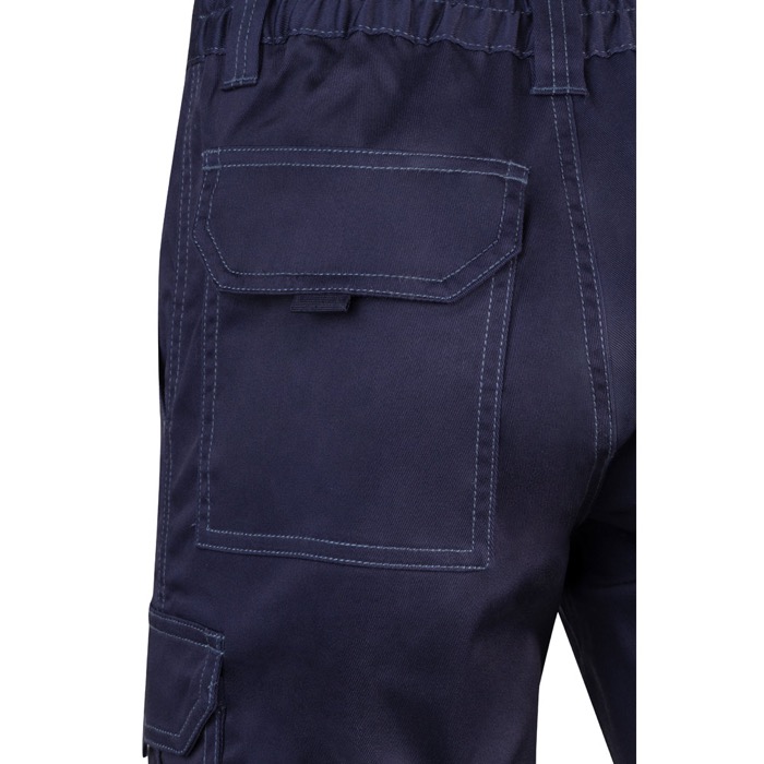 Bermudas multibolsillos elásticas de la marca Velilla, confeccionadas en una mezcla de algodón (46%), EME (Elastomultiéster) (38%) y poliéster (16%), ofrecen una combinación ideal de comodidad y durabilidad. Con un gramaje de 240 g/m², estas bermudas son robustas y ligeras, perfectas para el uso diario. La cinturilla elástica asegura un ajuste cómodo, mientras que los seis bolsillos, incluyendo dos franceses, dos laterales con fuelle y dos traseros, proporcionan amplio espacio para herramientas o dispositivos. Suministradas en bolsa de plástico, estas bermudas unisex son ideales para empresas que buscan uniformes prácticos y funcionales. El servicio Express garantiza una entrega rápida, facilitando la gestión de inventario.