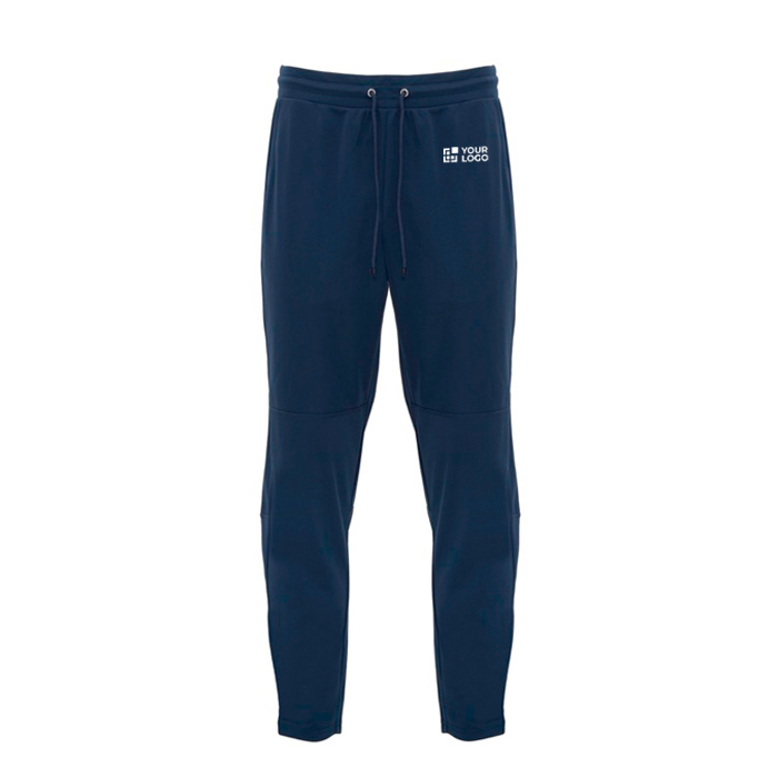Pantalón largo de corte pitillo fabricado en material elástico, diseñado para ofrecer comodidad y estilo. La cinturilla elástica se ajusta fácilmente mediante cordones exteriores, asegurando un ajuste perfecto. Incluye prácticos bolsillos laterales para guardar objetos pequeños. Los cortes transversales a mitad de la pierna añaden un toque moderno, mientras que las aperturas laterales en los bajos con cremalleras permiten un ajuste personalizado. Con un gramaje de 200.0, este pantalón de la marca Roly es ideal para actividades deportivas o eventos corporativos. Perfecto para promociones deportivas de tu marca, combinando funcionalidad y diseño atractivo.