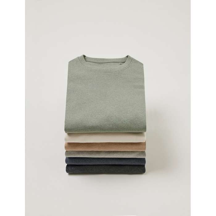 Camiseta unisex regular fit confeccionada en 100% algodón, combinando 50% reciclado y 50% orgánico, con un gramaje de 180 G/M². La eliminación del proceso de tinte y la mezcla de algodón reciclado en su color original con algodón orgánico virgen crean un atractivo efecto jaspeado. La autenticidad de los materiales y las afirmaciones de impacto ambiental están respaldadas por la tecnología de cadena de bloques y el trazador físico AWARE™. Un código QR proporciona acceso a un pasaporte digital del producto. Además, el 2% de las ganancias se destina a Water.org. Certificada por OEKO-TEX® STANDARD 100, esta camiseta puede presentar variaciones de color debido a los hilos reciclados. Ideal para empresas que buscan productos sostenibles para uniformes o promociones.