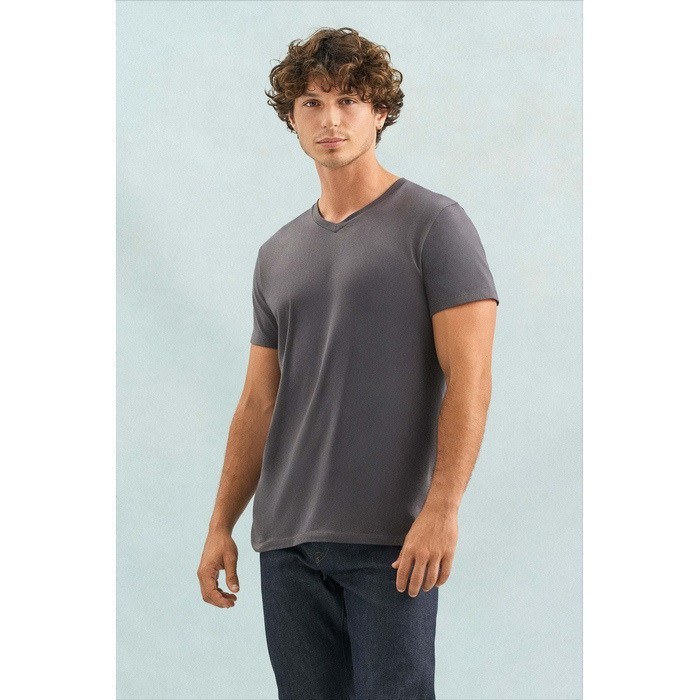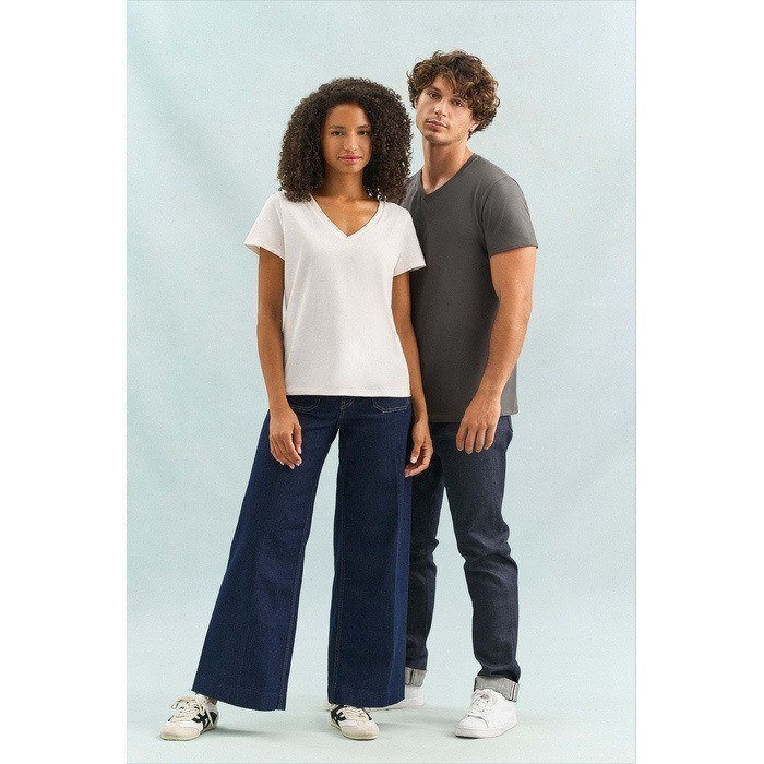 Camiseta de algodón semi peinado unisex en cuello V SOL'S