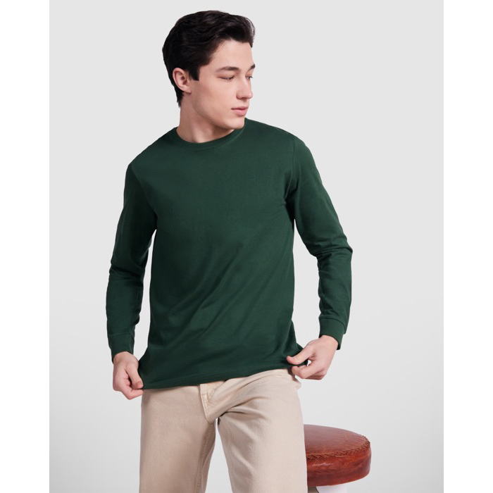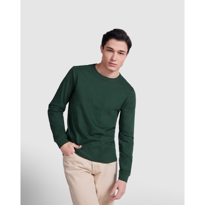 Camiseta de manga larga para hombre, fabricada por Roly, en tejido tubular de alta calidad. El diseño incluye un cuello redondo de 4 capas, lo que garantiza una mayor durabilidad y resistencia al uso diario. Los puños canalé 1x1 ofrecen un ajuste cómodo y seguro, mientras que las cubrecosturas reforzadas en cuello y hombros aseguran una estructura sólida y bien acabada. Con un gramaje de 165.0, esta camiseta es ideal para climas frescos, proporcionando calidez sin sacrificar la comodidad. Perfecta para empresas que buscan incorporar prendas duraderas y de calidad en su línea de merchandising corporativo.
