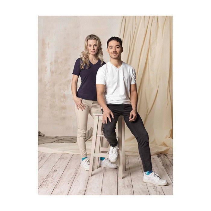 - Camiseta sostenible de algodón orgánico con cuello pico