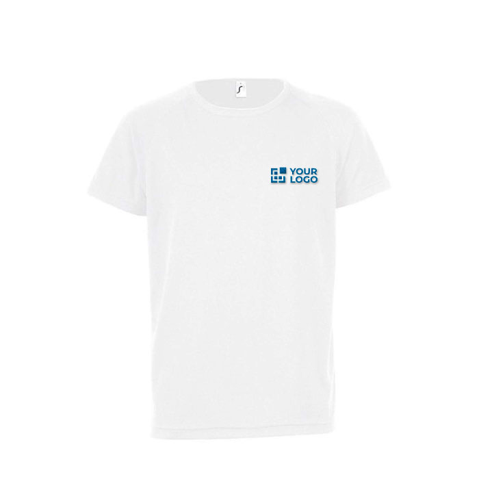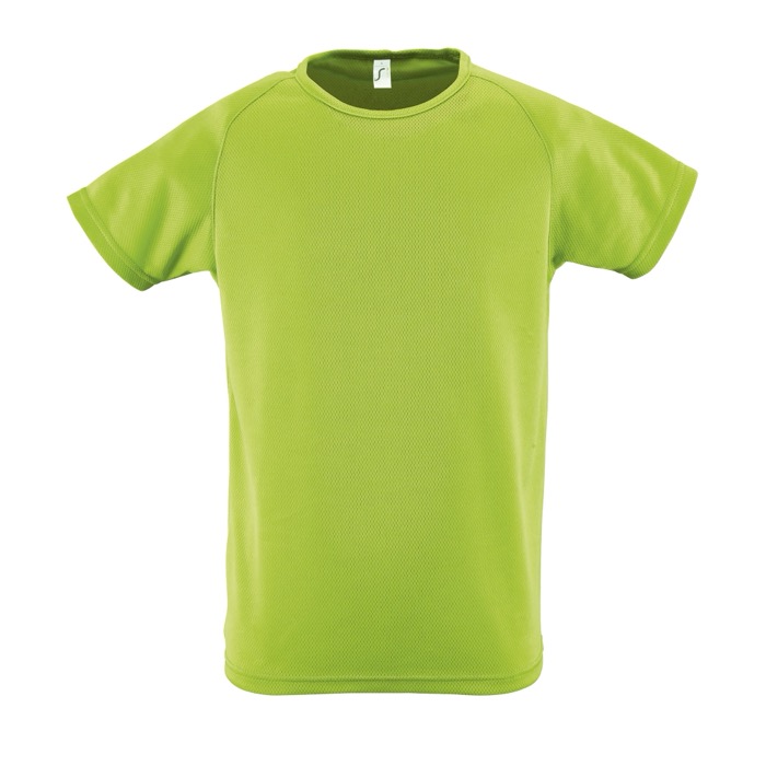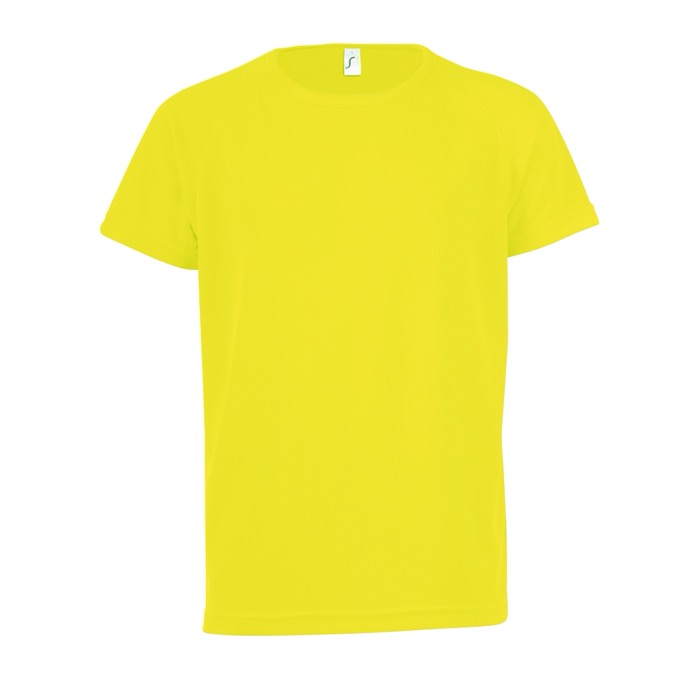 Camiseta infantil SOL'S SPORTY, fabricada en 100% poliéster transpirable, ideal para actividades deportivas. Su diseño incluye mangas raglán y costuras planas, proporcionando comodidad y libertad de movimiento. Disponible en una amplia gama de tallas, desde 6 hasta 12 años, y en varios colores, incluidos tonos fluorescentes, lo que permite adaptarse a diferentes necesidades. El ribeteado en el cuello y la espalda más larga añaden un toque funcional y moderno. La impresión en sublimación está disponible para el modelo blanco, ideal para personalización. Perfecta para eventos corporativos o como parte de un kit de merchandising deportivo para niños.