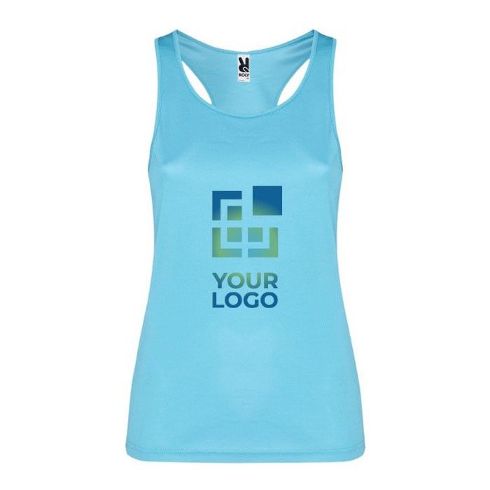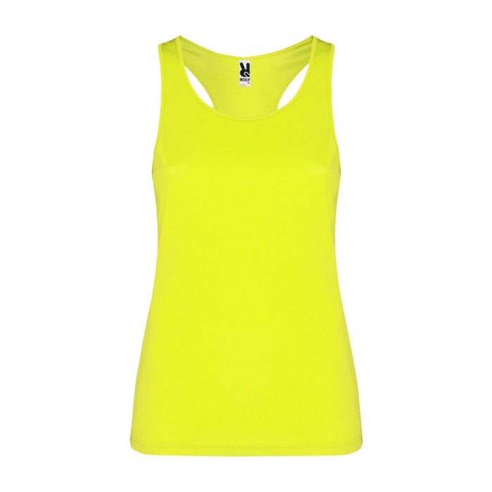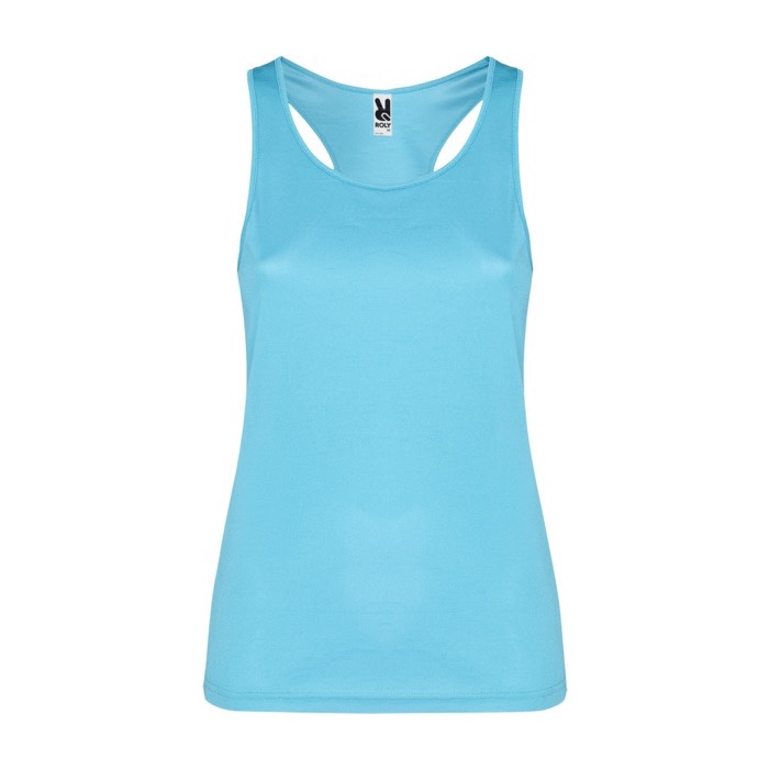 Chaleco promocional técnico de mujer, fabricado con tejido técnico transpirable, ideal para mantener la frescura durante actividades intensas. Su diseño incluye sisas y escote acanalados, proporcionando un ajuste cómodo y seguro. La espalda cruzada y las costuras laterales ofrecen libertad de movimiento, mientras que la etiqueta extraíble facilita la personalización. Con un gramaje de 140.0, es ligero y fácil de lavar y secar, lo que lo hace perfecto para un uso frecuente. La marca Roly garantiza calidad y durabilidad. Ideal para empresas que buscan uniformes cómodos o para eventos corporativos donde la movilidad y el confort son esenciales.