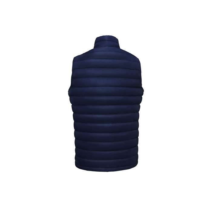 Chaleco ligero acolchado para hombre de SOL'S, confeccionado con tejido exterior y forro de 100% poliamida. El acolchado combina 60% Sorona y 40% poliéster reciclado, ofreciendo una opción sostenible y eficiente. Con un gramaje de 380T, este chaleco presenta una abertura con cremallera, dos bolsillos delanteros con cremallera y dos bolsillos interiores, proporcionando espacio práctico para guardar objetos. Su diseño incluye un cuello alto pequeño y un corte ceñido que se adapta cómodamente al cuerpo. Además, cuenta con un sistema de doblado ''en bolsa'' con topes, facilitando su transporte. Certificado OEKO-TEX®, garantiza seguridad en los materiales. Ideal para personalización con el logo de tu empresa, es perfecto para eventos corporativos o como uniforme de trabajo.