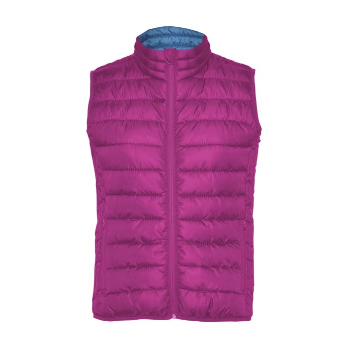 Chaleco de mujer acolchado de la marca Roly, fabricado con un material de tacto pluma que ofrece una sensación suave y cómoda. Equipado con cremalleras invertidas a juego y dos prácticos bolsillos frontales con cremalleras, este chaleco es funcional y estilizado. El forro interior a contraste añade un toque de diseño, mientras que el ribete elástico a tono en el bajo asegura un ajuste perfecto. Ligero y plegable, es fácil de transportar y almacenar. Su corte entallado realza la figura femenina. Además, es resistente al agua y a prueba de viento, ideal para actividades al aire libre. Disponible en varios colores, este chaleco es una opción versátil para uniformes corporativos o eventos de marketing al aire libre.