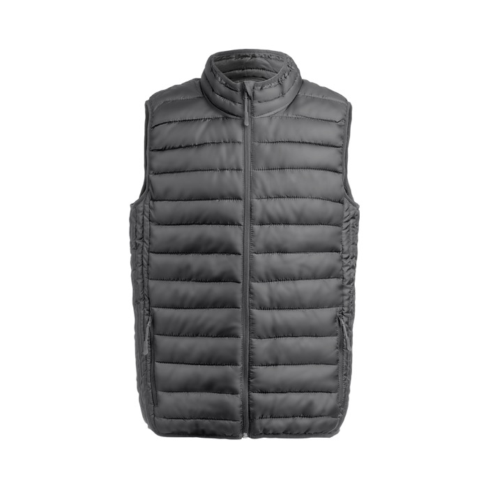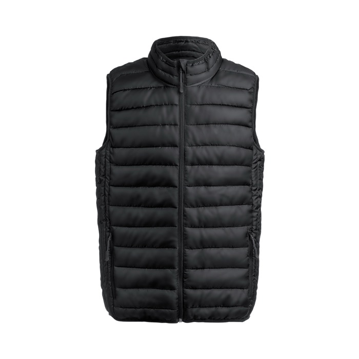 Chaleco unisex fabricado en cálido y suave material 100% poliéster. Diseñado para ser extra ligero, ofrece resistencia al agua y protección contra el viento, gracias a su acolchado interior. Equipado con un cierre de cremallera que incluye una cinta en el tirador, y amplios bolsillos laterales con tiradores, proporciona comodidad y funcionalidad. La cremallera del cuello viene con tapeta para mayor protección. Se suministra con una práctica funda de transporte, facilitando su manejo y almacenamiento. Para su cuidado, se recomienda lavar a una temperatura máxima de 30º, evitando el uso de blanqueadores, planchas o limpieza en seco. Ideal para empresas que buscan prendas versátiles para actividades al aire libre o eventos de marketing.