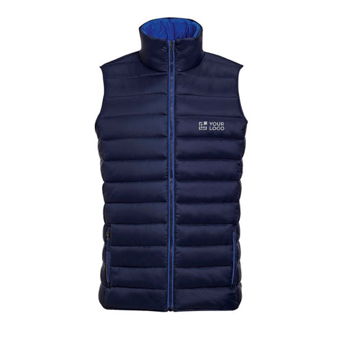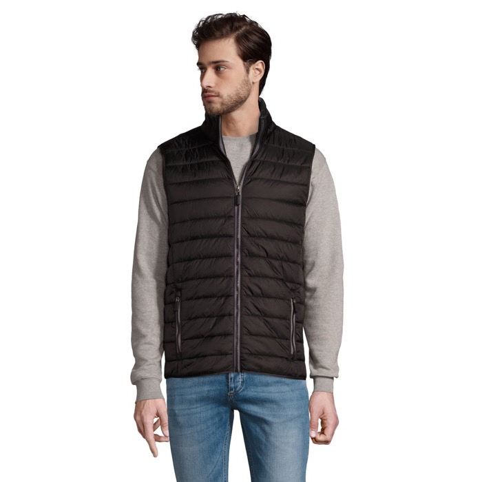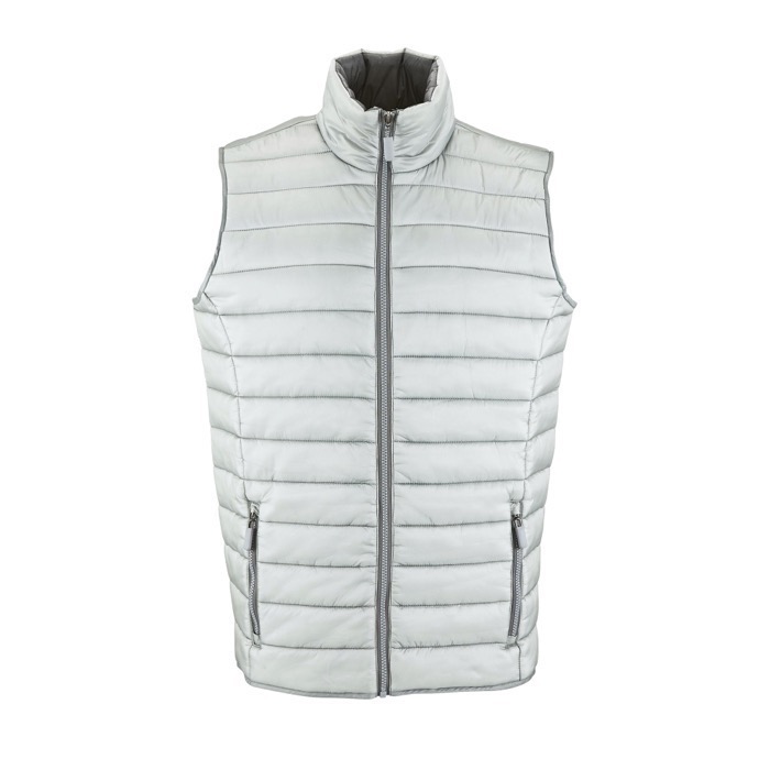 Este chaleco es una prenda ligera y moderna. Fabricado con exterior y forro 100 % poliamida y relleno 100 % poliéster (180 g/m2), ofrece abrigo sin añadir peso. Su corte ceñido y cuello alto aportan comodidad y un estilo actual. Incluye dos bolsillos con cremallera a juego con el forro, ideales para guardar pequeños objetos con seguridad. Además, cuenta con acabado tono sobre tono. De la marca SOL'S, es un bestseller con el que equipar a tu plantilla y protegerlos del frío. Disponible con servicio rápido en caso de que necesites tu pedido en menos días.