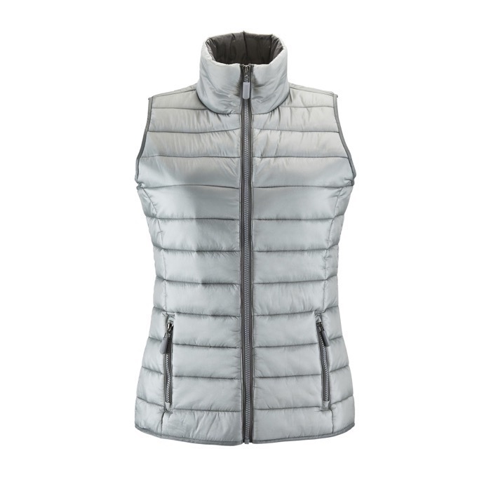 Este chaleco acolchado SOL's para mujer es ligero, cálido y cómodo. Su relleno de poliéster (180 g/m²) y forro de nylon dan abrigo sin añadir volumen. El cuello alto y la cremallera elegante aportan un toque moderno. Cuenta con un corte ajustado. Es repelente al agua. Los laterales en tono a juego con el forro añaden estilo. Ofrece libertad de movimiento y buena protección. Puede ser, asimismo, una capa adicional para llevar encima de una chaqueta. ¿Quieres tu pedido de chalecos en pocos días? ¡Tenemos disponible, para este modelo, servicio de transporte rápido!