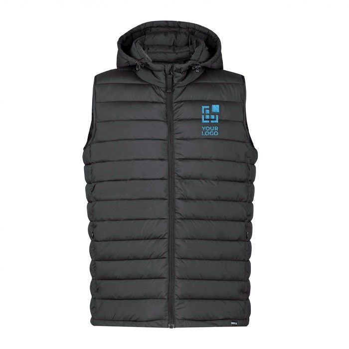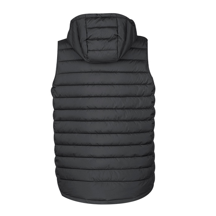 Chaleco unisex de 100% poliéster RPET, con capucha ajustable mediante cintas elásticas. En material extra ligero efecto pluma, resistente al agua y cortavientos. Con acolchado interior, cremallera en cuello con tapeta y cinta en tirador, además de amplios bolsillos laterales con cremallera. Incluye práctica funda de transporte con cordón ajustable y etiqueta con logotipo RPET. Disponible en colores formales y en tallas XS, S, M, L, XL, XXL. ¡Incentiva prácticas más verdes dentro de tu empresa con este best-seller hecho de materiales reciclados!