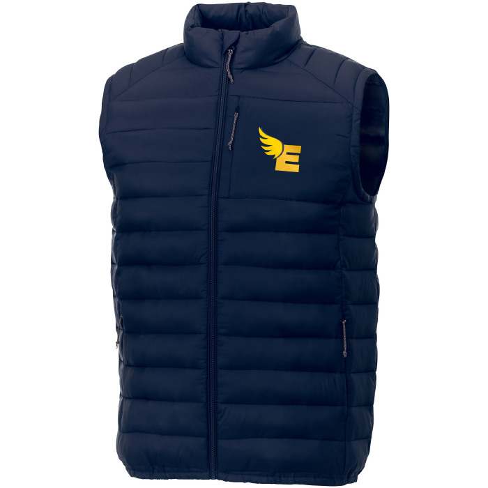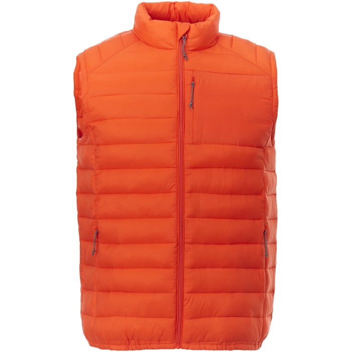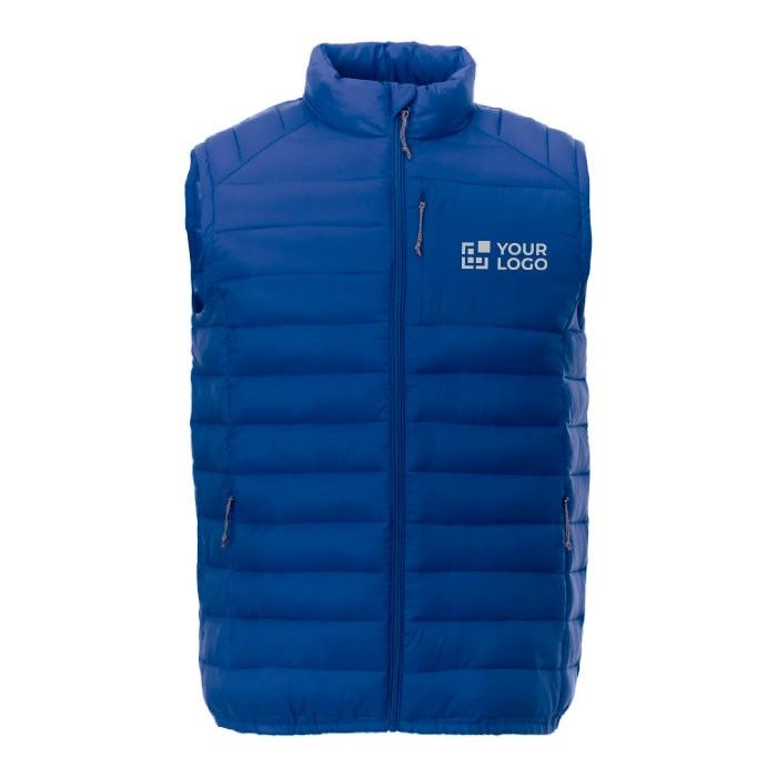 Chaleco con aislamiento fabricado en tejido técnico 100% Nylon 380T de 38g/m2, con un acabado encerado que ofrece resistencia y durabilidad. El relleno de falso plumón 100% poliéster proporciona calidez sin añadir peso. Incluye una solapa interior cortavientos con protección de barbilla para mayor comodidad en climas fríos. Los bolsillos con cremallera y tiradores de fácil agarre facilitan el acceso a objetos personales. La junta elástica y la bobina central frontal de la cremallera aseguran un ajuste perfecto. Además, cuenta con una cinta para colgar y opciones interiores para personalizar la marca, con etiquetas extraíbles para mayor confort. Ideal para empresas que buscan un producto unisex y personalizable para eventos corporativos o promociones.