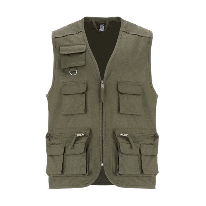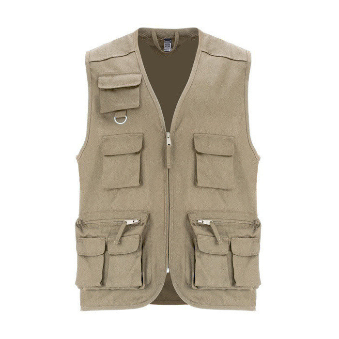 - Chaleco laboral multibolsillos con cuello en pico y cremallera central