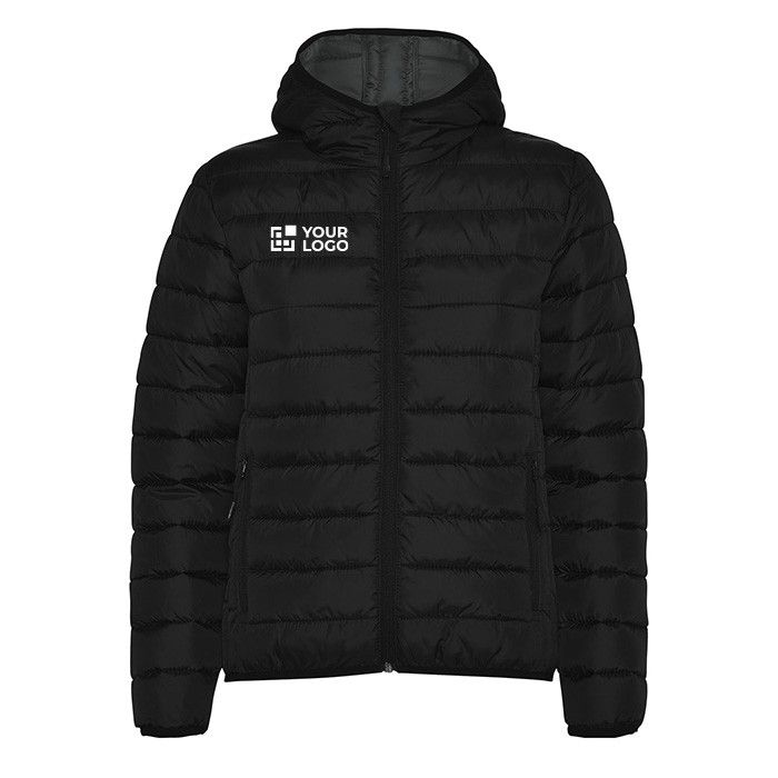 Chaqueta de mujer acolchada de la marca Roly, confeccionada con relleno de tacto pluma y capucha fija. Diseñada con cremalleras invertidas que incluyen un protector de barbilla a juego, esta prenda ofrece dos prácticos bolsillos laterales con cremallera. Los puños, bajos y capucha cuentan con un ribete elástico a tono, mientras que el forro interior presenta un contraste atractivo. Ligera y plegable, la chaqueta es resistente al agua y a prueba de viento, ideal para condiciones climáticas adversas. Se suministra en una bolsa de plástico para facilitar su transporte. Perfecta para empresas que buscan uniformes funcionales o regalos corporativos prácticos.