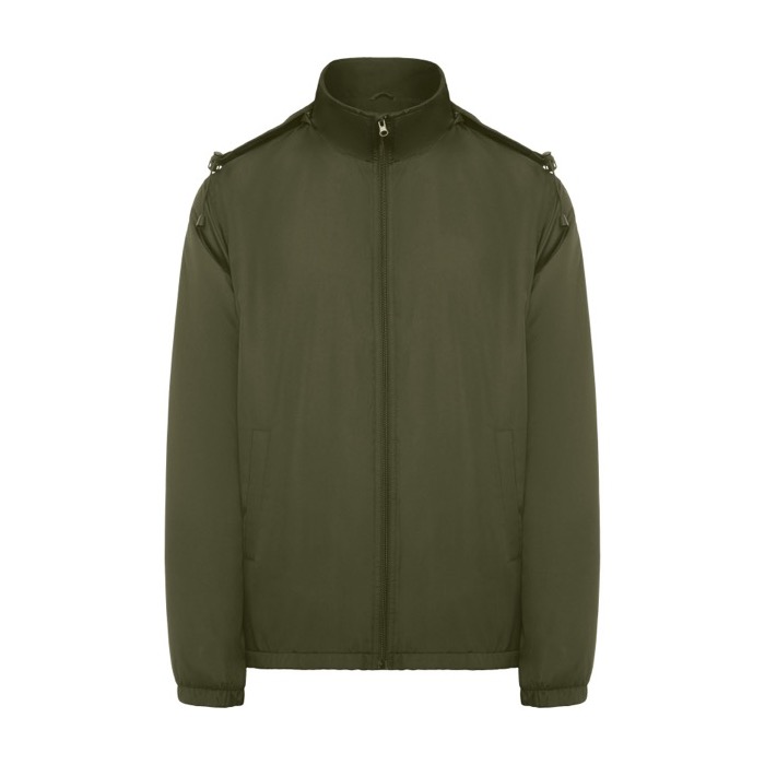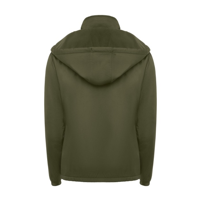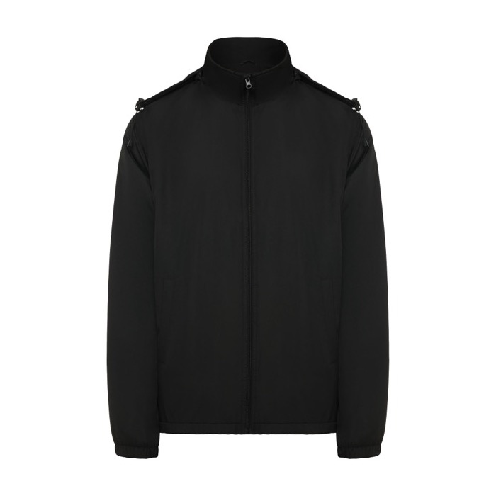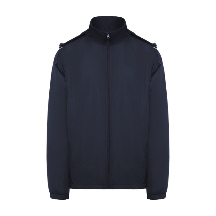Chaqueta ligera unisex de la marca Roly, fabricada con material repelente al agua, ideal para enfrentar condiciones climáticas adversas. Su diseño incluye un cuello alto y una capucha plegable con ajustadores, ofreciendo protección adicional contra el viento. El forro interior de micropolar proporciona calidez sin añadir peso, mientras que la cremallera frontal y el protector de barbilla aseguran comodidad y facilidad de uso. Los puños elásticos y los dos bolsillos laterales con cremallera permiten un ajuste seguro y almacenamiento práctico. Un bolsillo interior en el pecho izquierdo y una etiqueta extraíble completan sus características funcionales. Suministrada en bolsa de plástico, esta chaqueta es perfecta para empresas que buscan uniformes resistentes y versátiles para su personal, especialmente en actividades al aire libre o eventos corporativos.