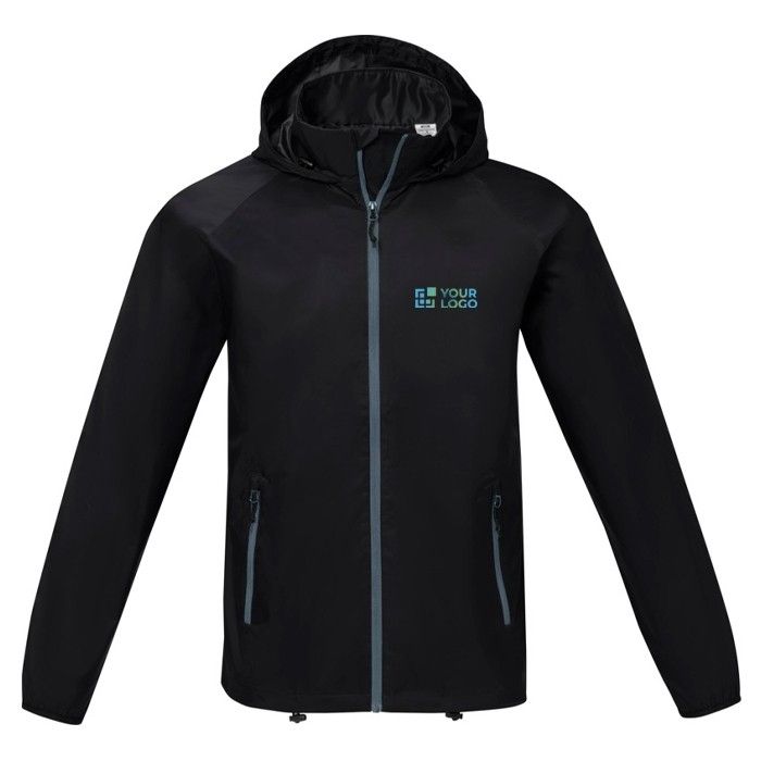 Chaqueta ligera de 280T ripstop 100% Nylon, diseñada para ofrecer resistencia al agua hasta 500 mm. Las mangas raglán permiten una mayor libertad de movimiento, mientras que la capucha enrollable proporciona versatilidad en condiciones cambiantes. La cremallera delantera central metálica invertida asegura un cierre seguro y moderno. Incluye prácticos bolsillos delanteros con cremallera y un bolsillo interior para almacenamiento adicional. El cordón ajustable con tope en el dobladillo inferior y la capucha permite un ajuste personalizado. El forro de 210T taffeta 100% Poliéster garantiza comodidad. La etiqueta principal extraíble ofrece un confort sin etiquetas. Ideal para empresas que buscan equipar a su personal con prendas funcionales en entornos lluviosos, o como parte de un kit corporativo para eventos al aire libre.
