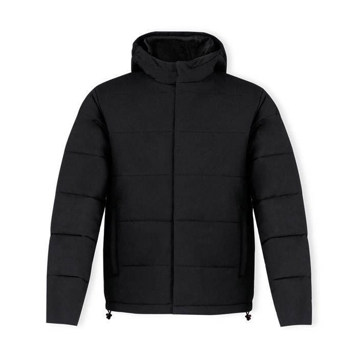 Chaqueta tipo parka en material 100% poliéster, diseñada para ofrecer calidez y suavidad. Su tejido ligero es resistente tanto al viento como al agua, ideal para enfrentar condiciones climáticas adversas. Presenta un diseño elegante con construcción horizontal y acolchado, además de una capucha fija integrada para mayor protección. El doble cierre frontal, compuesto por cremallera y corchetes, asegura un ajuste seguro. Los bolsillos laterales cuentan con tiradores a juego, y el cordón ajustable en el dobladillo permite personalizar el ajuste. Disponible en tallas XS a XXL, esta chaqueta unisex es perfecta para uniformes corporativos o eventos al aire libre, combinando funcionalidad y estilo profesional.