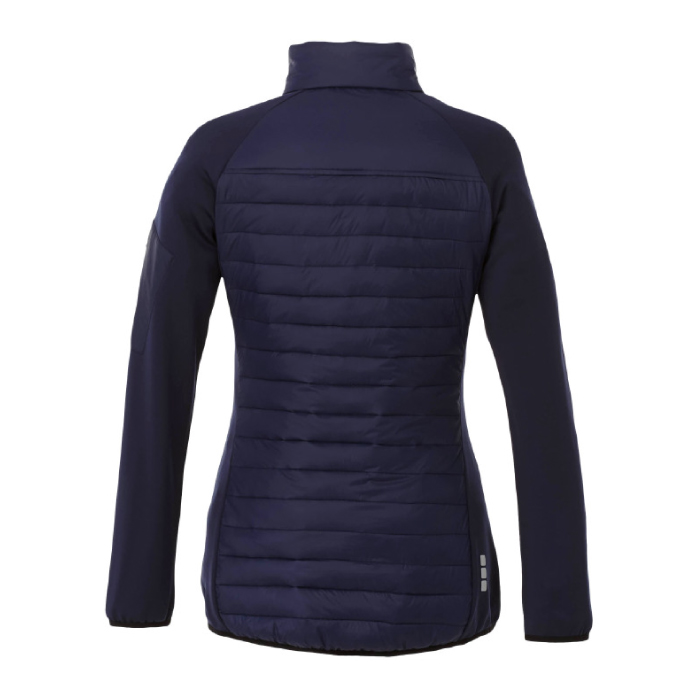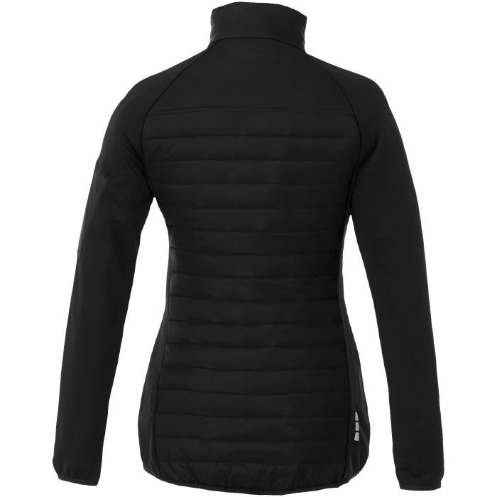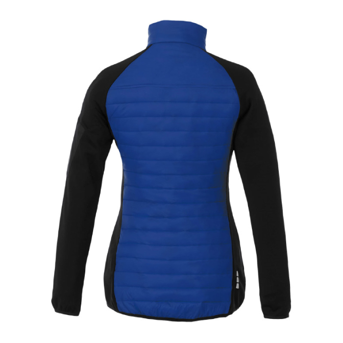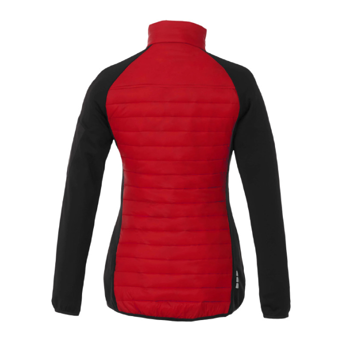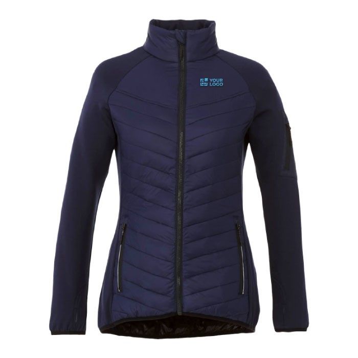 Chaqueta aislante híbrida para mujer, confeccionada en tejido de poliéster 380T repelente al agua y con un acabado a prueba de golpes. La estructura de 100% Nylon, con un gramaje de 38 g/m2, garantiza ligereza y resistencia. La tela contrastante, un punto entrelazado de 94% Poliéster y 6% Elastano, ofrece flexibilidad y comodidad. El forro es completamente de poliéster, asegurando un aislamiento térmico eficiente. Incluye una solapa interior antitormenta con protección para la barbilla y un puerto de salida interior para dispositivos, con guía de cable, ideal para mantener la conectividad. El faldón trasero y los elementos reflectantes mejoran la visibilidad y seguridad. La cremallera con tiradores de agarre fácil y la etiqueta en transfer proporcionan un uso cómodo. Para su cuidado, se recomienda lavar a 30º máximo en programa extradelicado, secar a baja temperatura y evitar blanqueadores y planchado. Perfecta para serigrafiar con el logotipo de tu empresa, esta chaqueta es ideal para acciones de marketing dirigidas a un público femenino.