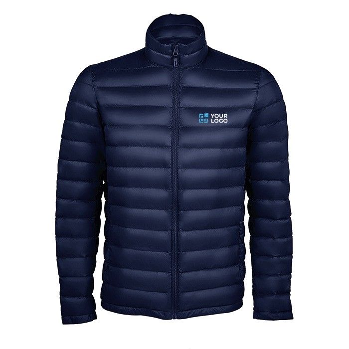 Chaqueta ligera acolchada para hombre SOL'S WILSON MEN, confeccionada con tejido exterior y forro de 100% poliamida. El acolchado combina 60% Sorona y 40% poliéster reciclado, ofreciendo una opción sostenible y cálida. Con un gramaje de 380T, esta chaqueta presenta una apertura con cremallera, dos bolsillos delanteros con cremallera y dos bolsillos interiores, proporcionando espacio práctico para objetos personales. El diseño incluye un cuello alto pequeño y un corte ceñido que se adapta al cuerpo. Su sistema de doblado "en bolsa" con topes facilita el transporte, ideal para empleados en constante movimiento. Certificada OEKO-TEX®, garantiza seguridad y calidad. Disponible solo con impresión, es perfecta para personalizar con el logo de la empresa, ideal para eventos corporativos o como uniforme de trabajo.