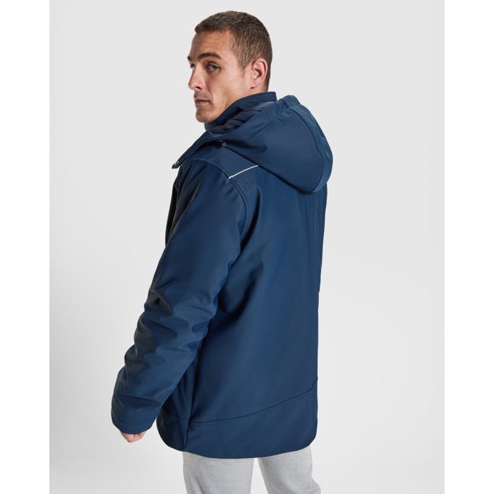 Parka térmica deportiva acolchada, pensada para trabajar en condiciones de frío y con certificación EN 14058:2017. Incorpora detalles reflectantes en hombros y espalda para mejorar la visibilidad. Las cremalleras termoselladas en el frontal y el pecho ayudan a proteger del viento y la humedad. Incluye dos bolsillos laterales con cremallera bajo tapeta y un bolsillo interior en el lado izquierdo. Mangas con velcro y puño ajustable en rib 1x1, capucha fija con ajustadores y acceso trasero para reprocesos. Opción práctica para equipación corporativa y eventos en exterior.