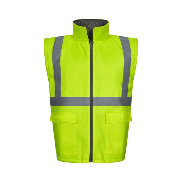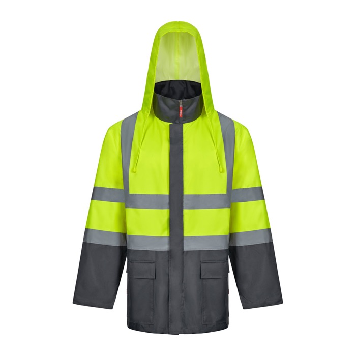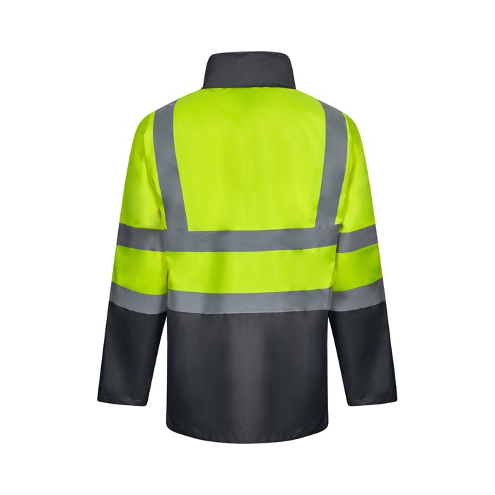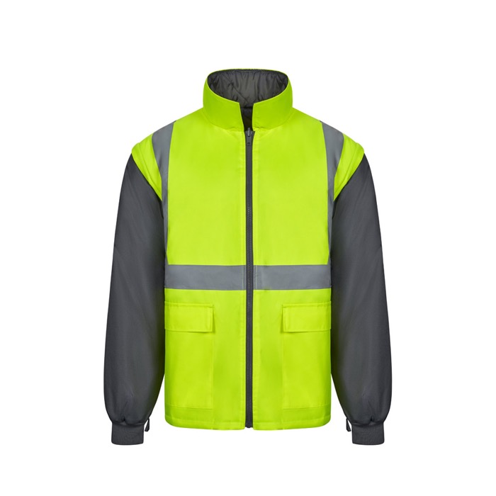 - Bandas reflectantes en torso, hombros y mangas, múltiples bolsillos