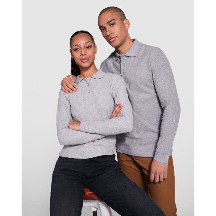 Polo de manga larga para hombre de la marca Roly, confeccionado con un material de alta calidad y gramaje de 220.0. Presenta un diseño clásico con cuello y bocamangas acanalados, que aportan un toque de elegancia y comodidad. La tapeta de tres botones permite un ajuste personalizado, mientras que los puños canalé 1x1 con elastano aseguran un ajuste perfecto y duradero. El cubrecosturas reforzado en el cuello añade resistencia y confort, ideal para el uso diario. Perfecto para uniformar a tu equipo, ofreciendo una imagen profesional y cuidada en cualquier entorno corporativo.