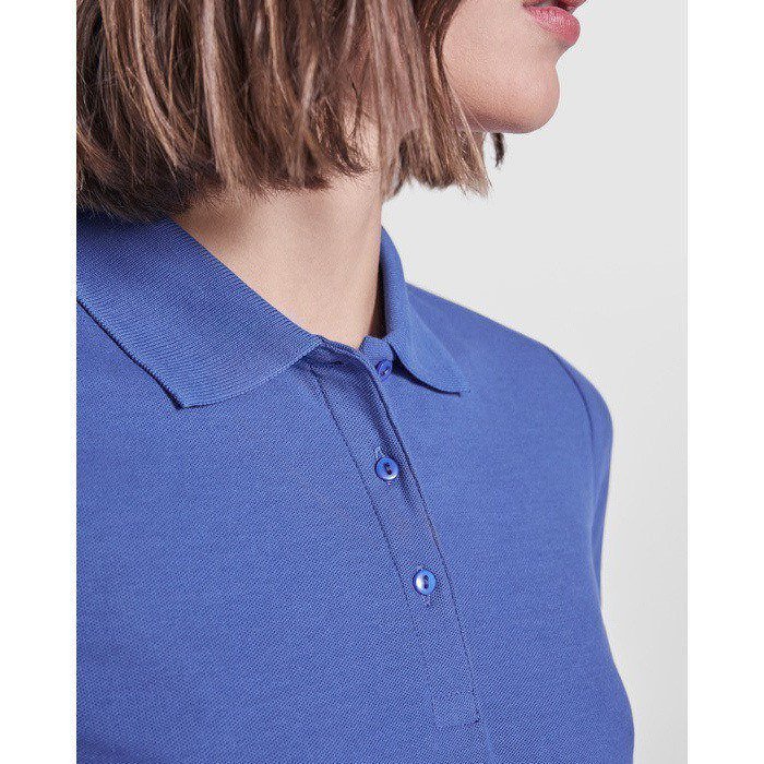 Polo de manga corta para mujer, confeccionado en material de alta calidad por la marca Roly. Presenta un diseño entallado que se adapta cómodamente al cuerpo, ideal para un look profesional. El cuello y el ribete de las mangas están elaborados en canalé 1x1, ofreciendo un acabado elegante y duradero. La tapeta con tres botones añade un toque clásico, mientras que el cubrecosturas reforzado en el cuello asegura mayor resistencia. Las aperturas laterales en el bajo proporcionan libertad de movimiento. Perfecto para incluir en campañas promocionales o como uniforme corporativo, combinando estilo y funcionalidad.