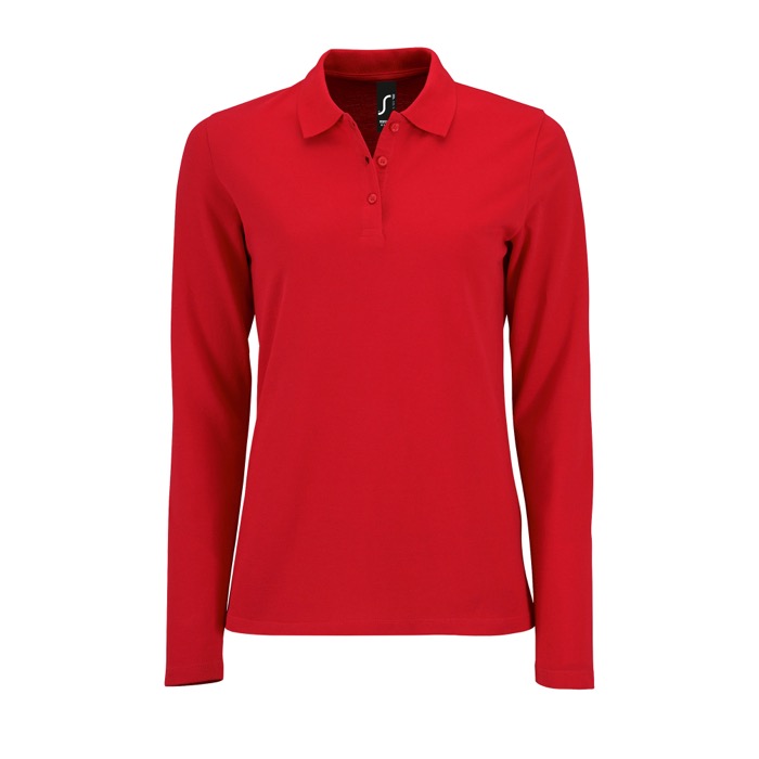 Polo piqué para mujer de manga larga, fabricado en 100% algodón piqué peinado de 180 gramos. El cuello de canalé 1x1 y la tapeta de 3 botones aportan un toque clásico y elegante, mientras que el corte entallado asegura un ajuste favorecedor. La cinta en el interior del cuello añade un acabado limpio y profesional. Certificado OEKO-TEX®, garantiza la ausencia de sustancias nocivas. Disponible exclusivamente con impresión, ideal para personalizar con el logotipo de tu empresa. Perfecto para uniformes corporativos o eventos promocionales, ofreciendo comodidad y estilo a tus colaboradoras. Servicio Express disponible para pedidos urgentes.