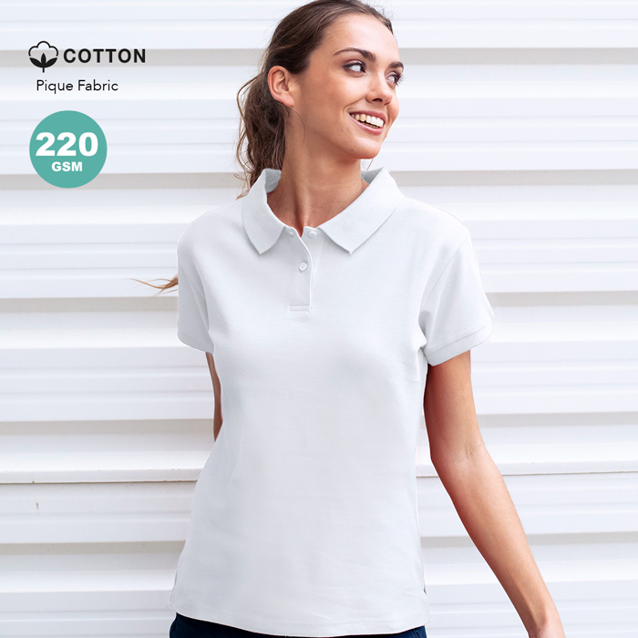 Polo blanco para mujer de 100% algodón con 2 botones a juego 220 g/m2
