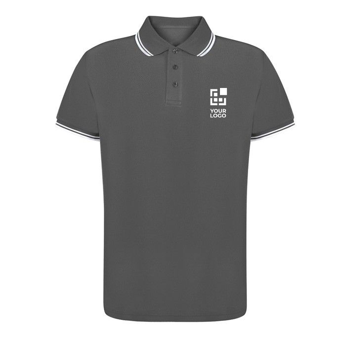 Polo de piqué unisex en poliéster 100% de 180 g/m². Tejido suave, ligero y transpirable, para acciones promocionales en época de calor o para usar como parte del uniforme del staff. Cuenta con cierre de tres botones al tono y aberturas laterales para mayor comodidad. El diseño incorpora detalles en contraste en cuello y mangas, aportando un acabado cuidado y actual. Disponible en una amplia gama de colores y tallas, desde la XS hasta la XXL. Una prenda versátil y atractiva, pensada para destacar su marca en eventos, uniformes o campañas publicitarias.