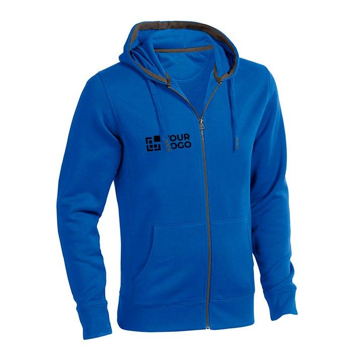 Sudadera con capucha y cremallera, confeccionada en un resistente tejido de punto compuesto por 80% algodón y 20% poliéster, con un gramaje de 300 g/m². Diseñada para ofrecer comodidad y durabilidad, cuenta con paneles laterales, puños y dobladillo inferior de punto liso que aseguran un ajuste perfecto. La capucha, equipada con un cordón ajustable, está forrada con punto jersey simple para mayor confort. Incluye un práctico bolsillo tipo canguro y detalles como ojales de color plata con el logo grabado. El tapacosturas satinado en espiga añade un toque de contraste. Ideal para empresas que buscan personalizar prendas con su logotipo, esta sudadera unisex es perfecta para eventos corporativos o como uniforme de equipo. Además, el servicio Express garantiza una entrega rápida.