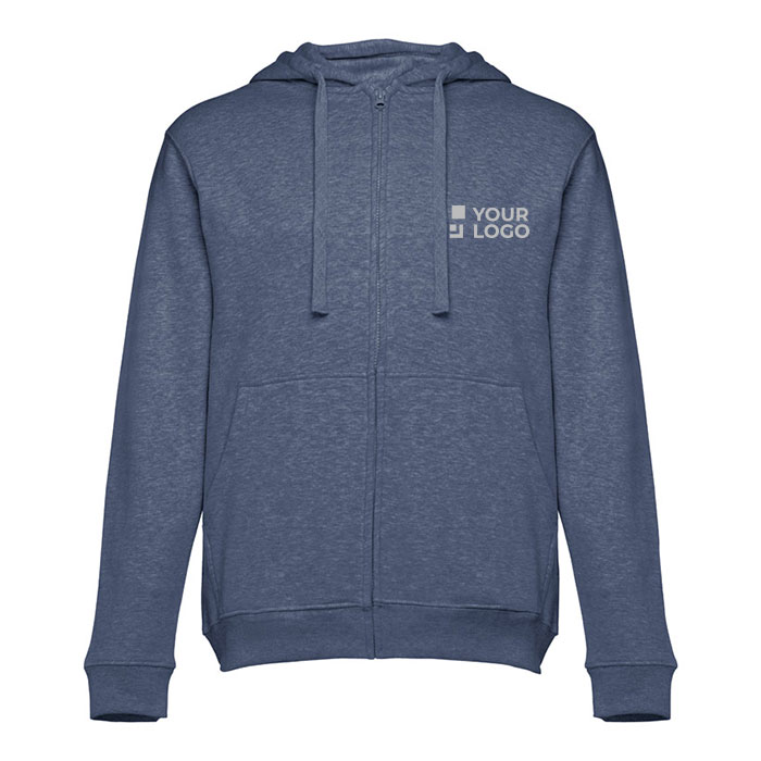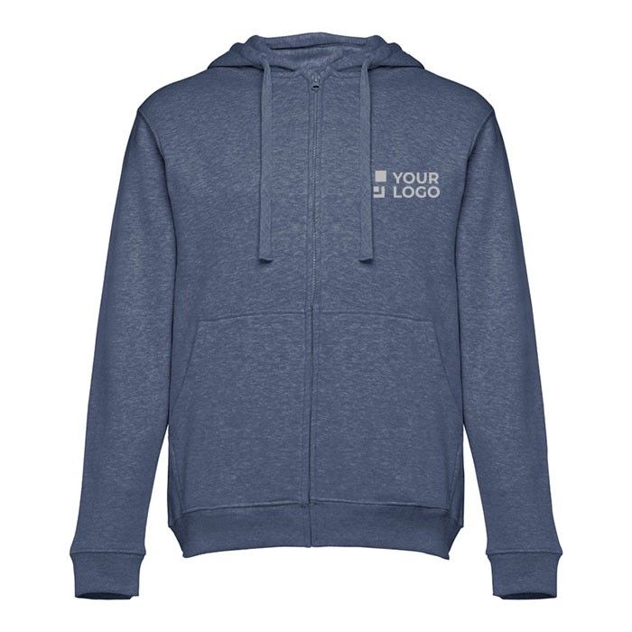 Sudadera unisex de 50% algodón y 50% poliéster de 320 g/m2. Cuenta con capucha forrada con cordón para que se ajuste mejor a la cabeza y, así, la persona la lleve como desee. Interior cardado. Asimismo, tiene 2 bolsillos marsupiales, aportando un estilo juvenil. Tiene cierre de plástico con cobertura. Hay disponible una buena gama de colores a elegir, según las preferencias de la empresa. No dispone de embalaje individual para su entrega. Sin embargo, si quieres tu compra en menos días, cuenta con nuestro servicio de transporte rápido.
