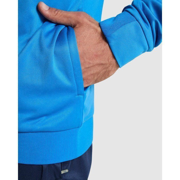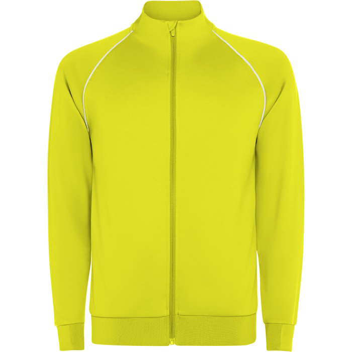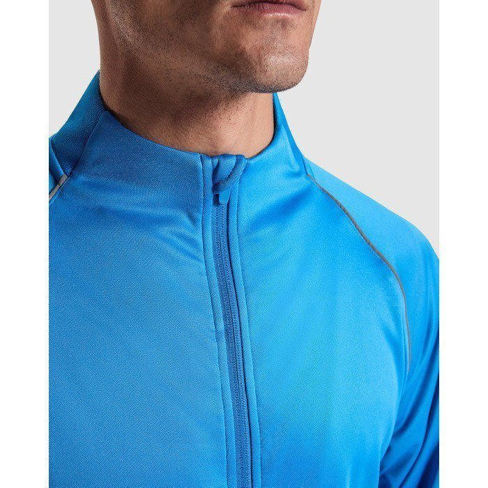 Sudadera deportiva unisex de tejido técnico, con manga ranglán y cuello alto para un ajuste cómodo en movimiento. Incorpora cremallera frontal para regular la ventilación y facilitar el uso diario. El rib 1x1 en bajo, cuello y puños ayuda a mantener la prenda en su sitio sin apretar. Incluye cubrecosturas del mismo tejido para un acabado más limpio, además de detalles en cuello trasero y puños. El vivo reflectante en la sisa aporta visibilidad. Útil para equipaciones de eventos y acciones internas con tu logo.