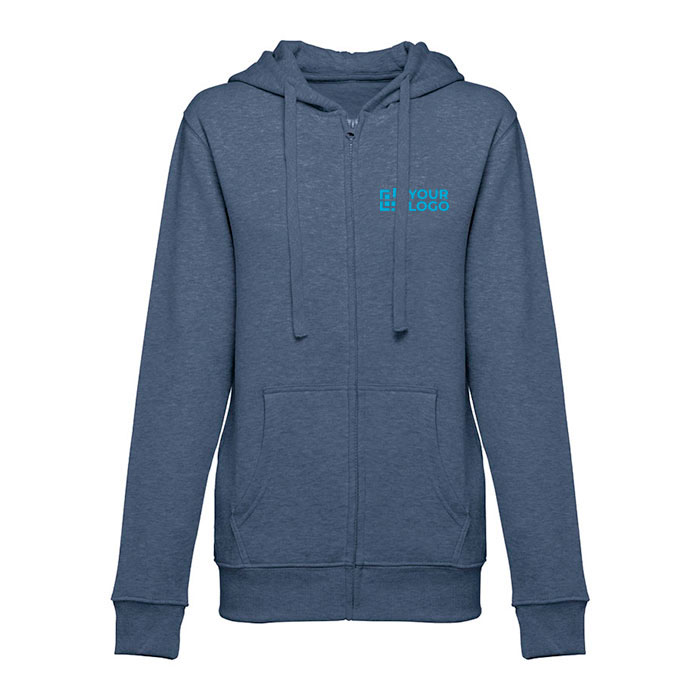 Sudadera de mujer confeccionada en una mezcla de 50% algodón y 50% poliéster, con un gramaje de 320 g/m², que ofrece un equilibrio perfecto entre comodidad y durabilidad. El interior cardado proporciona una sensación suave y cálida, ideal para climas frescos. La capucha, forrada y ajustable mediante un cierre de cordón de color, añade un toque práctico y moderno. En la parte frontal, dos bolsillos marsupiales con cierre de plástico y tapa ofrecen espacio adicional para guardar objetos pequeños. Los puños y la cinturilla de canalé aseguran un ajuste cómodo y seguro. Ideal para uniformes corporativos o como parte de una estrategia de marketing promocional, gracias a su servicio Express que garantiza una entrega rápida.
