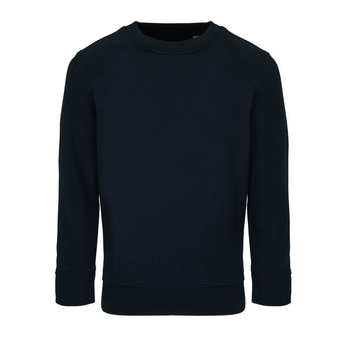 Sudadera infantil de la marca SOL'S, confeccionada con un 80% de algodón y un 20% de poliéster reciclado certificado. Presenta un cuello redondo y mangas montadas, con un acabado de canalé 1x1 en cuello, puños y bajo. Incluye una media luna y tapacosturas de punto liso en el cuello, ofreciendo un corte relajado que garantiza comodidad. Con un gramaje de 280.0, es ideal para personalización con logos corporativos. El poliéster reciclado y el Certificado Global Recycled Standard (GRS) refuerzan su compromiso con la sostenibilidad. Perfecta para eventos corporativos o como parte de una estrategia de marketing ecológica.