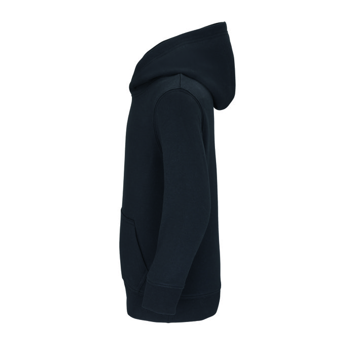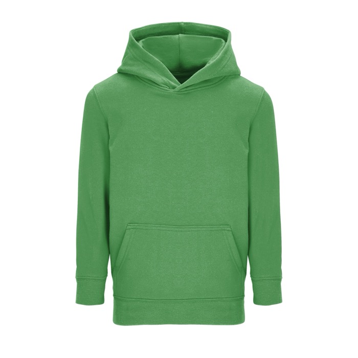 Sudadera infantil de la marca SOL'S, confeccionada con un 80% de algodón y un 20% de poliéster reciclado certificado por el Global Recycled Standard (GRS). Presenta mangas ajustadas y un corte relajado, ideal para la comodidad de los niños. La sudadera está cortada y cosida con precisión, y cuenta con un acabado de canalé 1x1 en puños y bajo, lo que garantiza durabilidad. Incluye un práctico bolsillo canguro y una capucha forrada, además de una media luna y tapacosturas de punto liso en el cuello para mayor confort. Con un gramaje de 280.0, es perfecta para cualquier clima. El servicio Express asegura una entrega rápida. Ideal para eventos corporativos o como parte de un uniforme escolar sostenible.