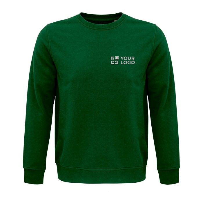 Sudadera unisex de cuello redondo fabricada con 80% algodón orgánico y 20% poliéster reciclado, con un gramaje de 280 gramos. Este producto de la marca SOL'S combina comodidad y sostenibilidad, siendo una opción ideal para empresas que buscan reflejar sus valores ecológicos. La sudadera es un bestseller, lo que garantiza su popularidad y aceptación en el mercado. Además, cuenta con un servicio Express para entregas rápidas, facilitando la planificación de eventos corporativos o campañas de marketing. Perfecta para personalizar con el logo de tu empresa, esta prenda es ideal para uniformes de equipo o regalos promocionales.