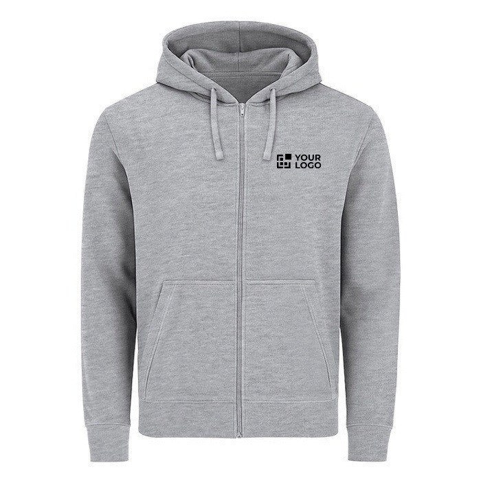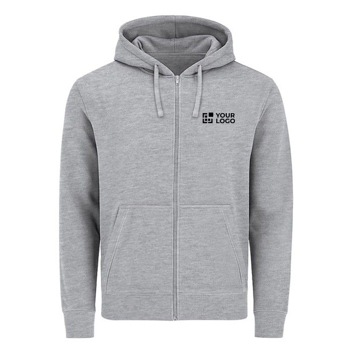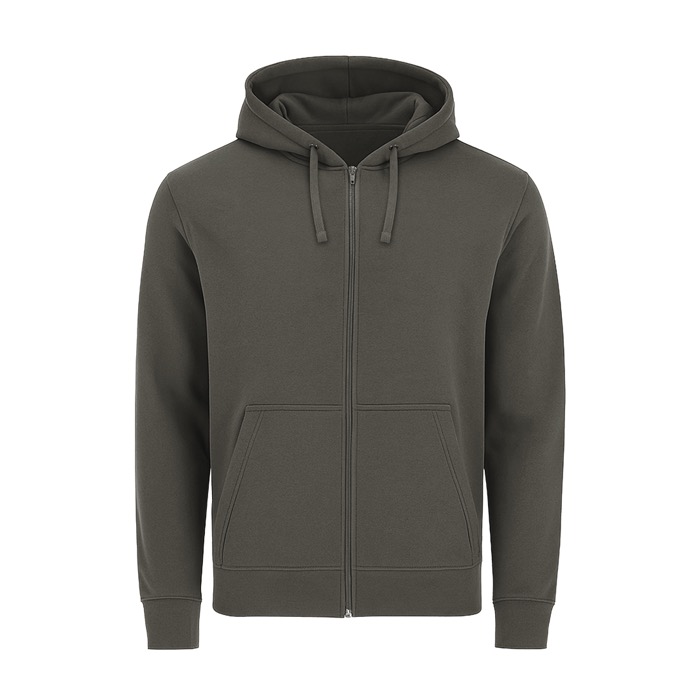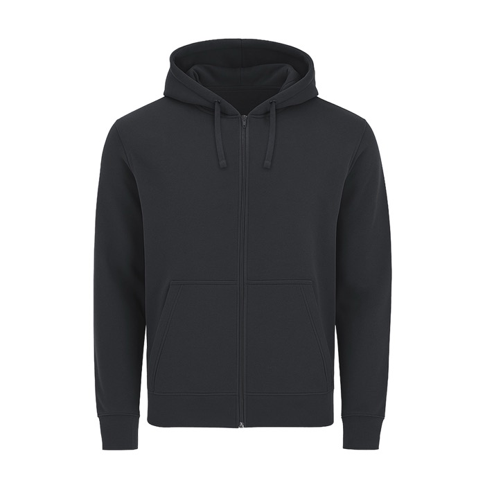 Sudadera unisex confeccionada en una mezcla de algodón y poliéster, con una suave felpa perchada de 280 g/m2. Diseñada con una capucha forrada a tono de doble tejido, ofrece un cierre frontal de cremallera completa que se integra perfectamente con el diseño. Los cordones ajustables y los ojales metálicos a juego permiten un ajuste personalizado. Incluye un práctico bolsillo tipo canguro para mayor funcionalidad. El cubrecosturas en el cuello y los puños y cintura en punto canalé 1x1 con elastano aseguran un ajuste cómodo y duradero. Ideal para uniformes corporativos o eventos de marketing, combinando estilo y funcionalidad.